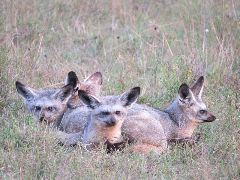 Kenya – Oserian Wildlife Sanctuary: A family of bat eared foxes at sunset