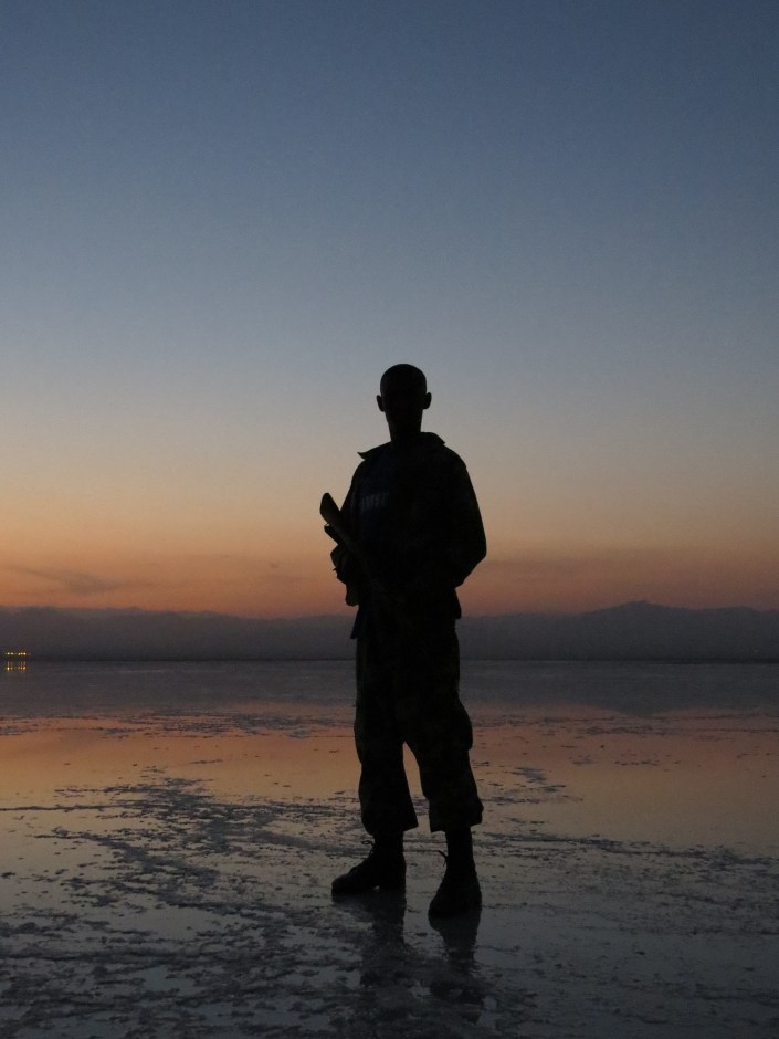 Danakil Depression – Dallol Salt Lake: One of the many soldiers that protected us from a potential attack from Eritrean Soldiers. In 2012 a group of German and Hungarian tourists was killed in the Danakil Depression hence the high securtiy meassures now.