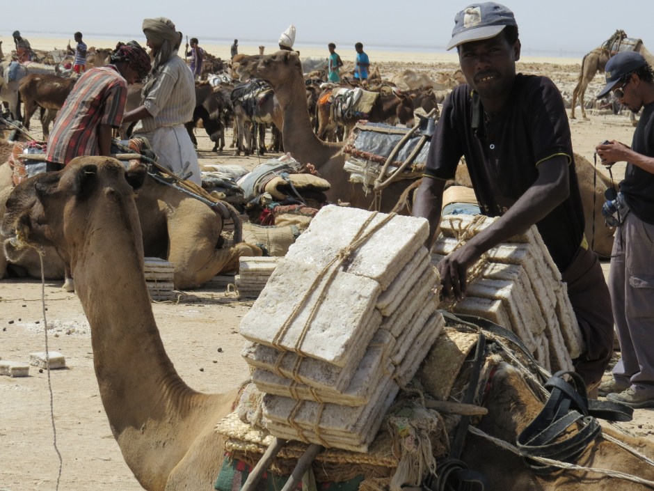 IMG_1412 ← Previous Next → Danakil Depression – Dallol Salt Lake: One of the Afar people loading the cur salt bricks on to a camel. Danakil Depression – Dallol Salt Lake: One of the Afar people loading the cur salt bricks on to a camel.