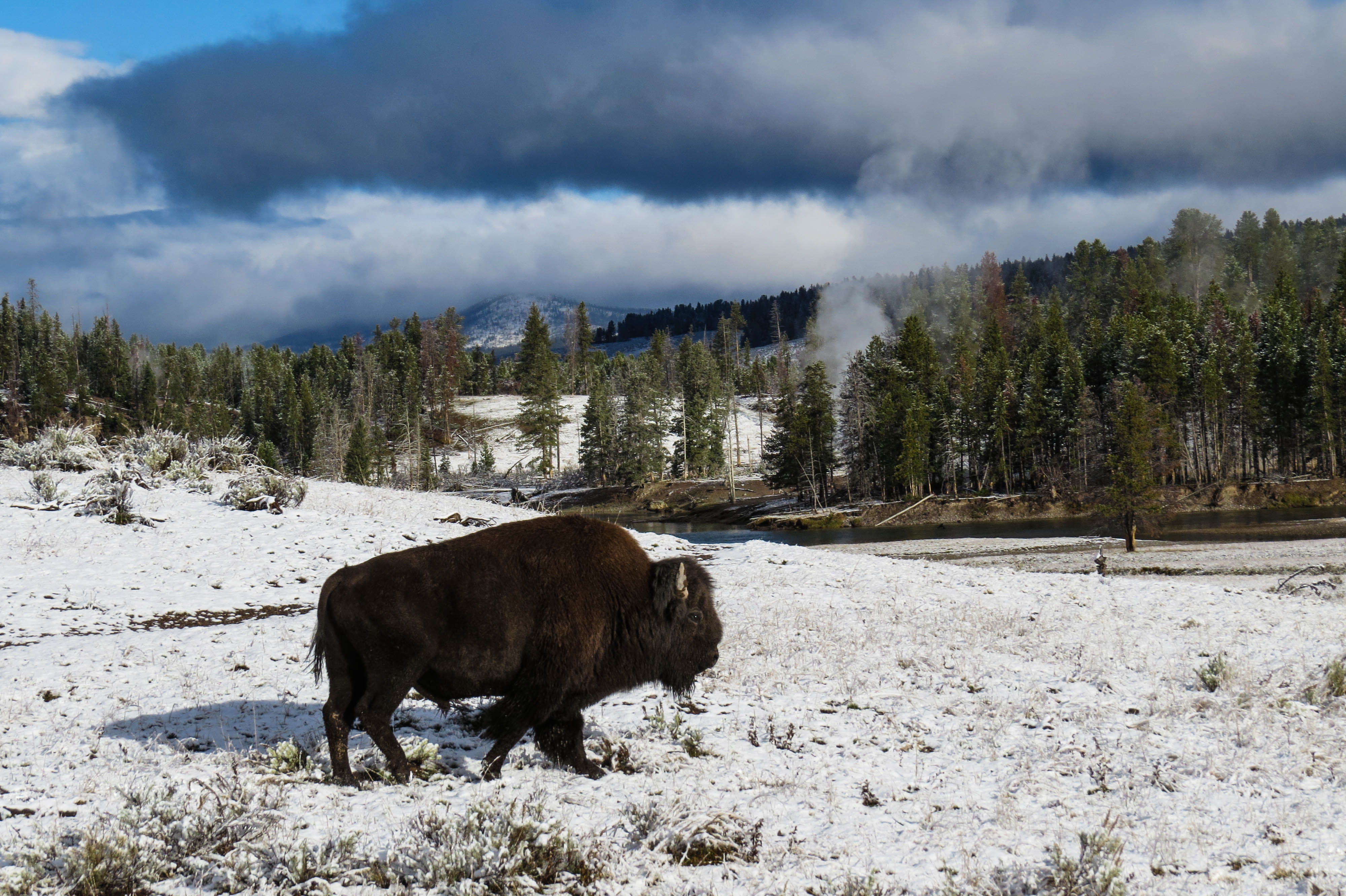 IMG_7619 ← Previous Next → Wyoming – A bison with one of the many steaming geysers in the back ground in Yellowstone National Park.