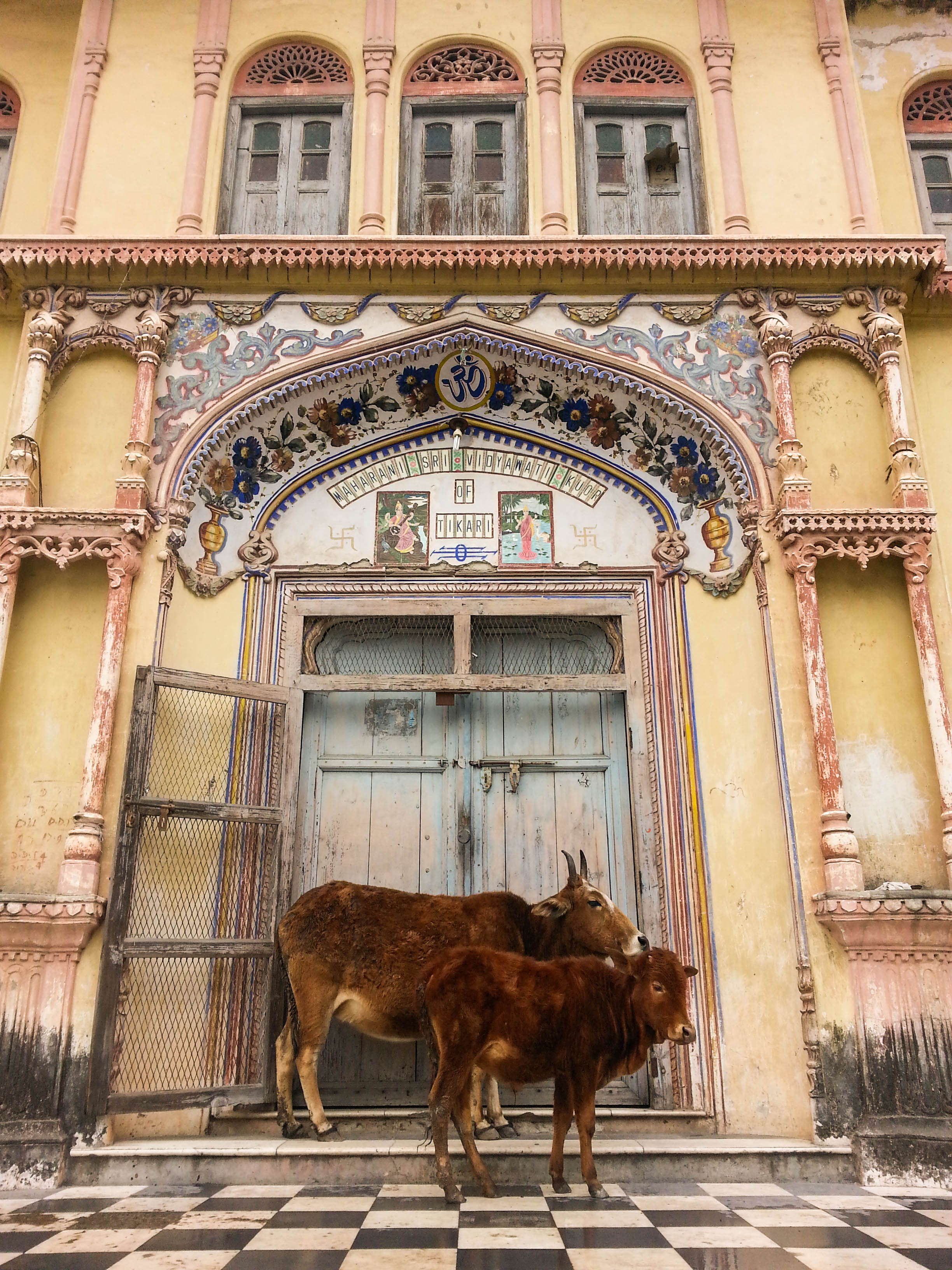 2015-01-22 15.17.29 ← Previous Next → Cows are holy and roam around freely in the town. Sometimes they gather in the most random places or are found in the entrances of shops where they usually get some food.