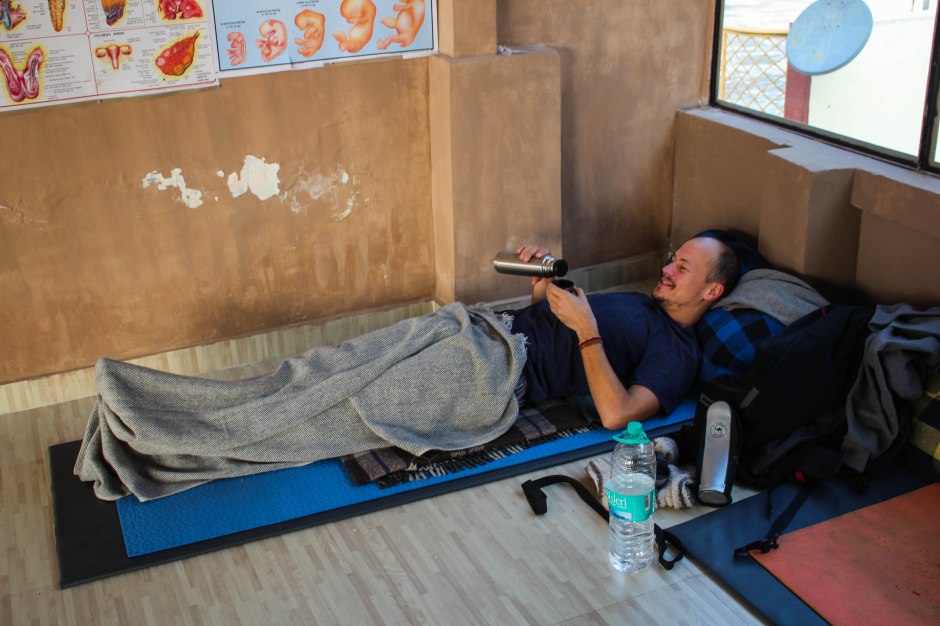 IMG_1551 ← Previous Next → I had a cold for a couple of days so I just lay in the corner during the yoga classes drinking herbal tea.