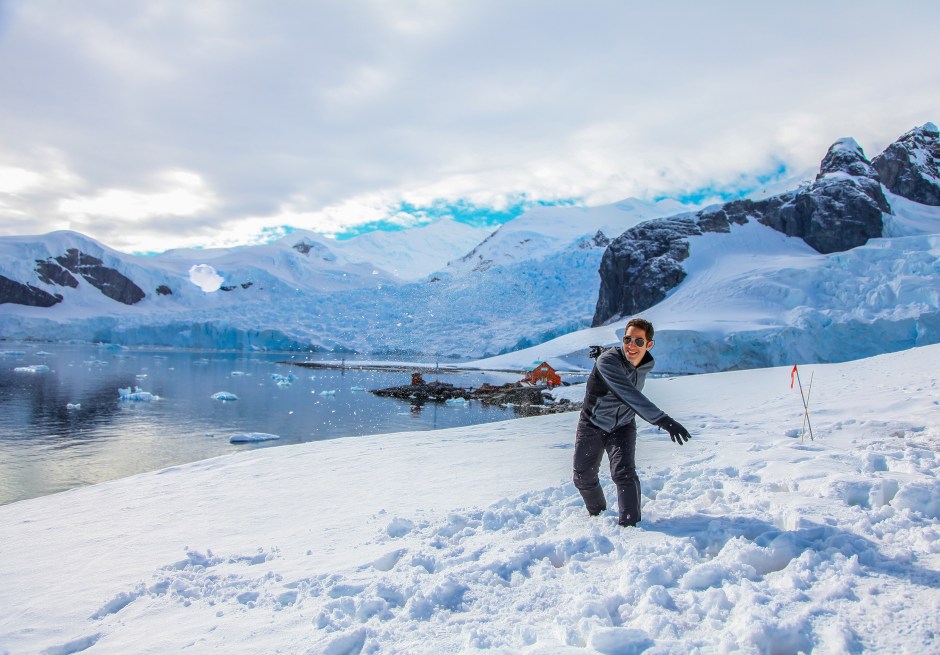 IMG_5402 Antarctica – Facundo throwing a snowball at me. He is not only a backpacker like I am but also an amazing guy.. and a cabron!