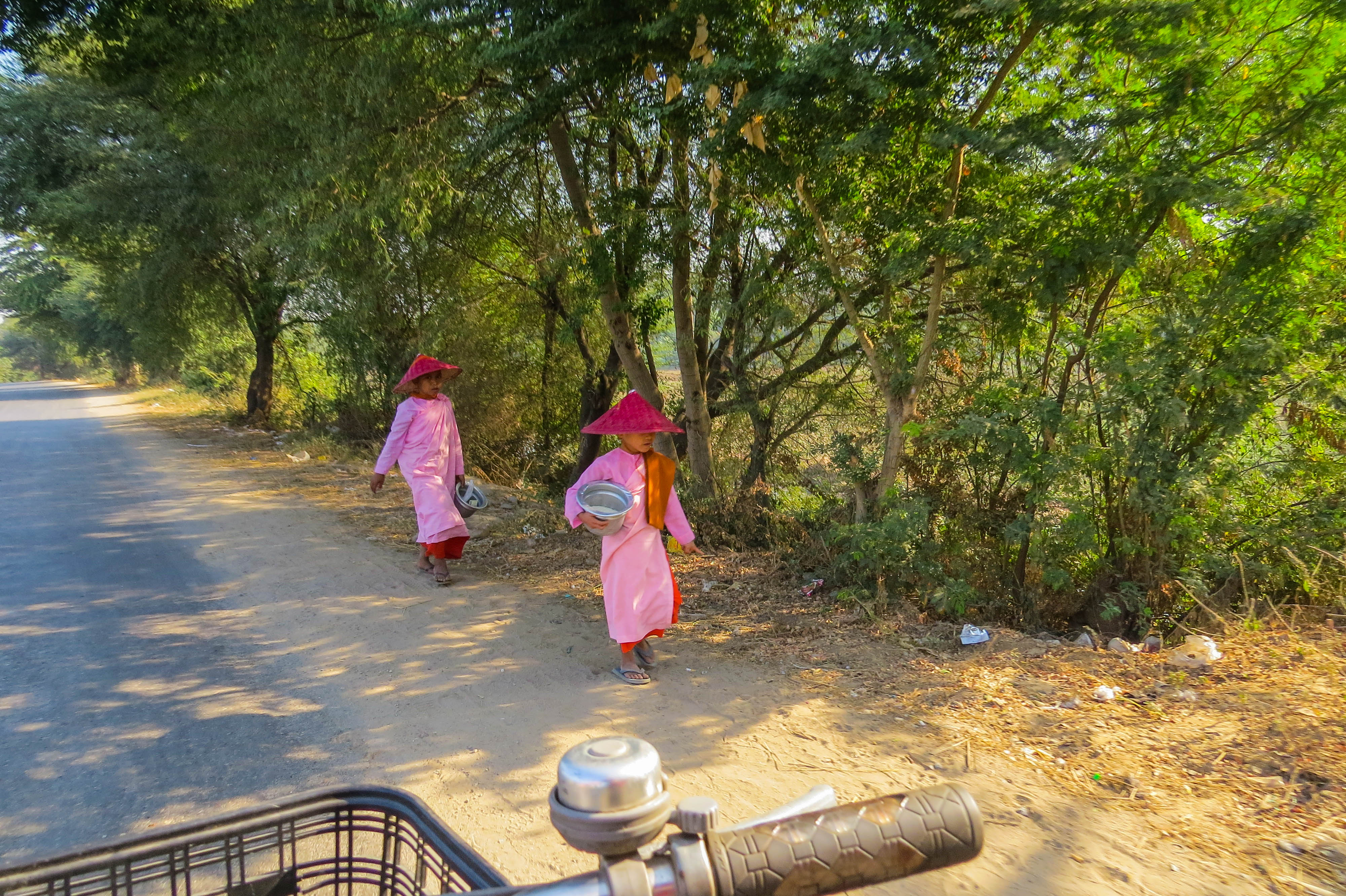 Mandalay – Two buddhist nuns on their daily morning routine to beg for food.